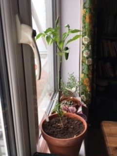 There are a few things to do to give your chilli plant the best chance of overwintering. First, check all over for pests or disease, particularly sneaky sap suckers that can hide in creases and stem joints. Wipe aphids off with finger and thumb, or if you see scale insects you may have to remove them with a cotton bud dipped into white spirit, to break down the waxy coating. Then – painful as it will be to do so – it is also a good idea to cut the plant back. It has taken so long to reach this point but we don’t want the plant wasting energy on trying to maintain green leaves all winter and chopping back will encourage a dormant state. And so as soon as that little chilli shows some colour I am harvesting and chopping. Cut the plant right back leaving about 15cm of stem and take off all side shoots too. It is also a good idea to repot now, again to make sure that there are no lingering pests. Shake all of the soil off of the rootball and repot into a small pot of fresh compost. Then you just need to give the plant a little trickle of water every few weeks until spring. When the weather warms I will increase water a little and watch for growth (it may be slow, be patient), and then pot on into a bigger pot and hopefully watch my chilli plant take off and finally provide me with that good, early crop of Lemon Drop chillies.