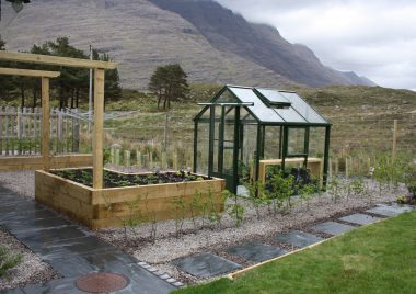 Our client in Torridon in the NW Scottish Highlands selected the Traditional 6 in the Hartley Botanic range. Set within a small vegetable garden and surrounded by a native hornbeam hedge, the views are just stunning. We love the simplicity and functionality of this greenhouse, most importantly, it is very tough. Of most concern to us was the strength of the wind that blows down the glen, but once inside you feel instantly protected, warm and secure – just what your plants need. Our client, who has not gardened before is delighted with the Hartley and the young tomato plants are thriving. Thank you again for your assistance and expertise.