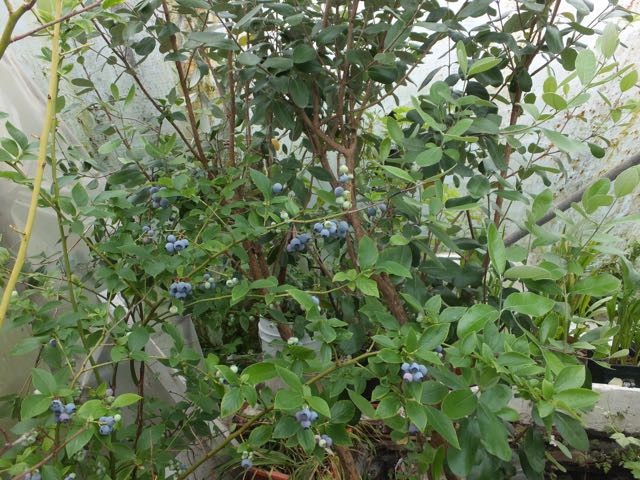 Having spent winter outdoors bring in the tubs late winter or early spring. The change spurs the plants into earlier growth flowering from Easter and the berries start ripening a month or so after. Under-cover berries swell larger and are sweeter, and importantly are bird proof! Plus they ripen over a long period, and with several varieties you can eat fresh Blueberries June till October!