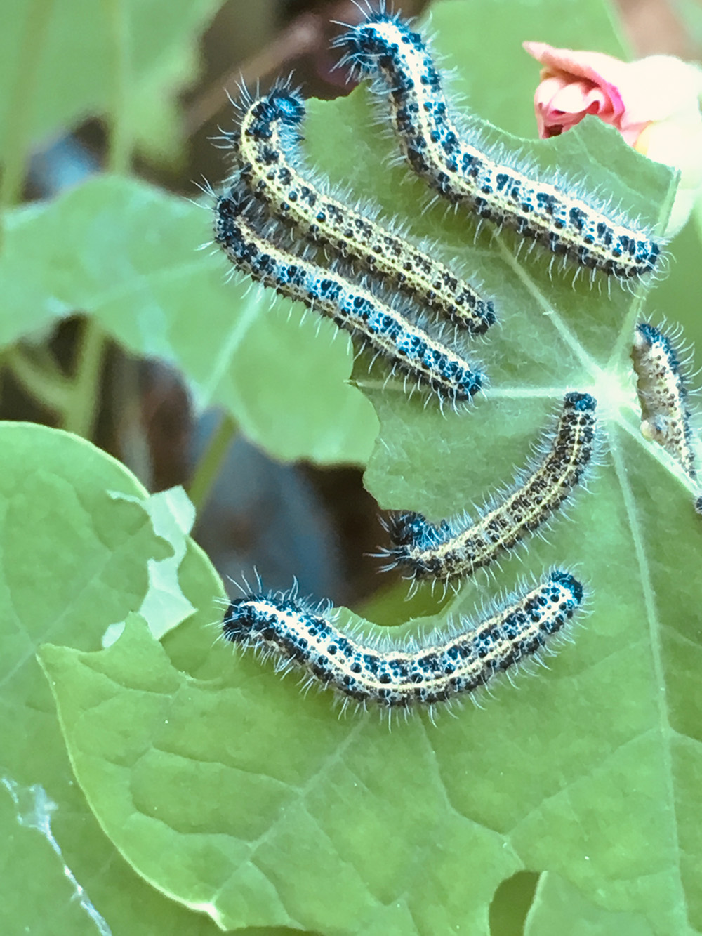 Once the little bird eggs have hatched their attentive parents are frantic searching for things to feed them. Baby birds can’t eat seeds and nuts, they need protein rich caterpillars and other insects to grow and thrive. Those wriggly caterpillars feeding on the plants are food for chicks. One nest of ten blue tit chicks needs one thousand caterpillars a day to keep them alive. But it you’ve sprayed the caterpillars with insectides to kill them, then what will the chicks eat. Caterpillars, aphids, and other garden insects are baby food for birds. And in many instances our plants are baby food for the caterpillars before they transform into the butterflies and moths that we love. Plants are the bottom layer of the food chain and food for caterpillars, aphids and other leaf munching creatures like slugs and snails. If we start to understand the balance of nature and allow the natural balance to restore, we won’t need pesticides and can harness the power of free-pest control and ensure that birds and other creatures have plenty of food too.