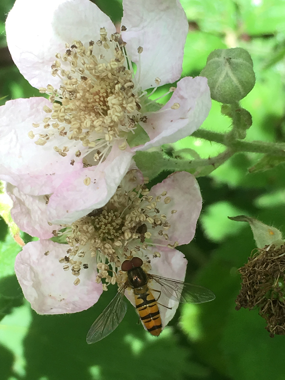 Fairly recent research from the National Botanic Gardens of Wales discovered that bramble flowers are now the most important plant for late summer forage for bees and another research project has shown that the flowers are also important for hoverflies.