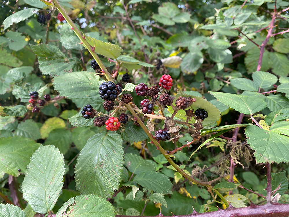 Autumn is planting time and a great time to embellish your plot with edibles. Blackberries are a valid candidate, you can even grow cultivated forms of blackberries on your plot that will make huge, fat berries for all your culinary needs, and many of these vigorous plants are thornless too. That is a huge step forward for harvesting safely but I haven’t found the flavour the same as the wild cousins. Nevertheless, these rampant plants are easy to control, they fruit on last year’s stems so once your plants have generated the copious berries, you can cut those stems back to the ground as they will not fruit again. The new stems that grow alongside can be tied in neatly so that when they fruit the next year, the fruits are easy to reach and pick.