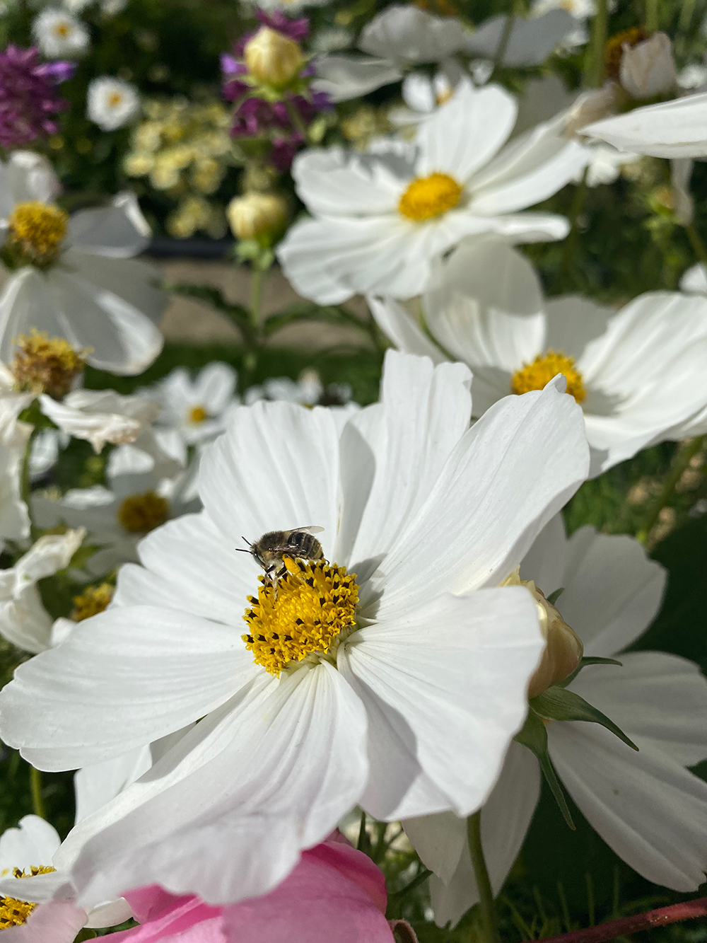 In contrast to the hot borders are the cooling effects of white and green. Where green isn’t just the leaves and foliage, sometimes it’s the flowers too. There is something very calming about a white border and often white blossoms are very scented too as in nature their perfume exudes at night when the moths are active. The white flowers ‘shine’ in the moonlight, their scent and presence attracting these night flying pollinators to their nectar rich flowers.