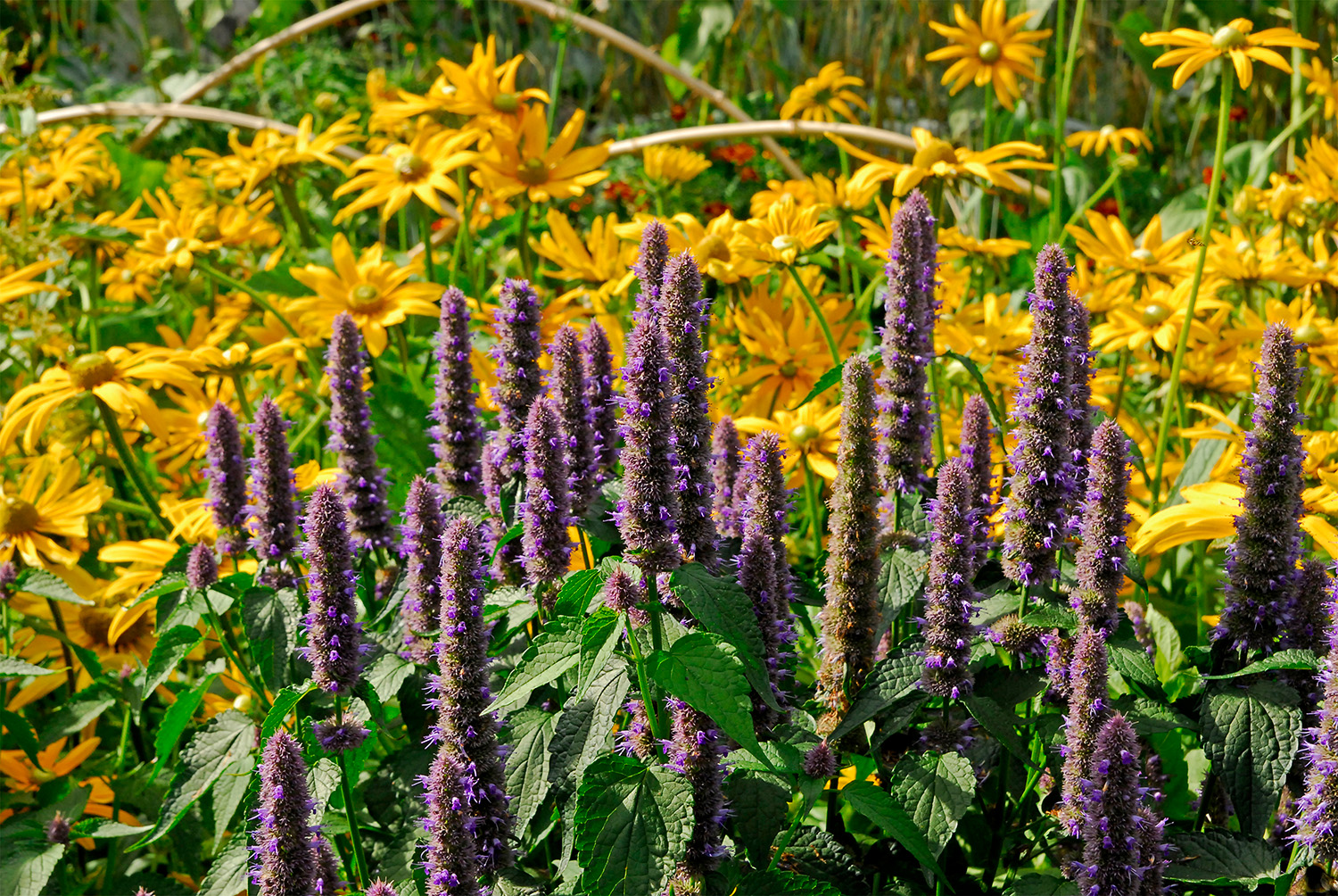 It’s not just me that simply loves the richness of purple; mauve, lavender and purple flowers are a magnet for butterflies and bees which are attracted to the purple shades and feed from the nectar rich flowers. Plants like hardy geranium, Verbena bonariensis, veronica, catmint, lavender, asters, agastache, salvias, alliums and even thistles all wear their purple capes with pride and offer a sumptuous buffet of protein rich pollen and energy rich nectar for pollinators. But you don’t need to restrict your colour palette to plants, you can choose purple paint and fabrics to adorn your outdoor space adding this warm and wonderful hue to the garden. Purple seems to go with anything. As a combination of cool blue and warm red it has temperature elements to suit any colour scheme and can be the punctuation in a border of colour dividing colours that clash and allowing their own persona to shine through with the purple partner plants softening and blending the effect. It’s a useful tool when choosing plant combinations and pacing the speed of the border. Mix it with white for a striking contrasting effect.