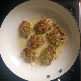 Top and tail the courgettes and grate them coarsely. More mature courgettes can be watery, so tip them into a teatowel, form into a ball in the centre and twist the ends of the teatowel so that they squeeze the ball together. Push and squeeze out the excess moisture and tip the grated courgette into a bowl. Add the egg and crumble in the feta and mix well, then add the flour and chilli flakes (add more chilli if you like it hot, less if you’re not so keen) and mix again. Heat a centimeter of oil in a frying pan until medium hot and lower in small spoonfuls of mixture – larger ones tend to stay soggy on the middle and we want a high crisp to soft ratio. When the edges have started to turn brown take a pallet knife and turn the over, crisping on the other side. When done lift them out and drain on kitchen roll. Eat them hot, with salad and a cooling seasoned yoghurt dip.