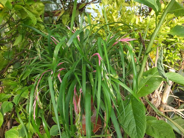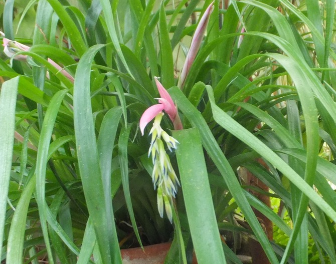 Related to the pineapples these are Bromeliads with tough leaves designed to funnel water back to the roots. These evolved as epiphytes and are found in holes in trees filled with decaying wood and leaf-mould. This situation with huge swings of water-logging then drought, and with dense shade, has adapted these plants rather well for cultivation here. Indeed their only slight drawback is these are tender with B. nutans being less vulnerable though even this cannot stand actual frost. Indeed in this it’s similar to Citrus and can likewise enjoy summers outdoors. This can be very beneficial especially for large old mature clumps as the rain and wind clear any accumulated dust off the foliage.