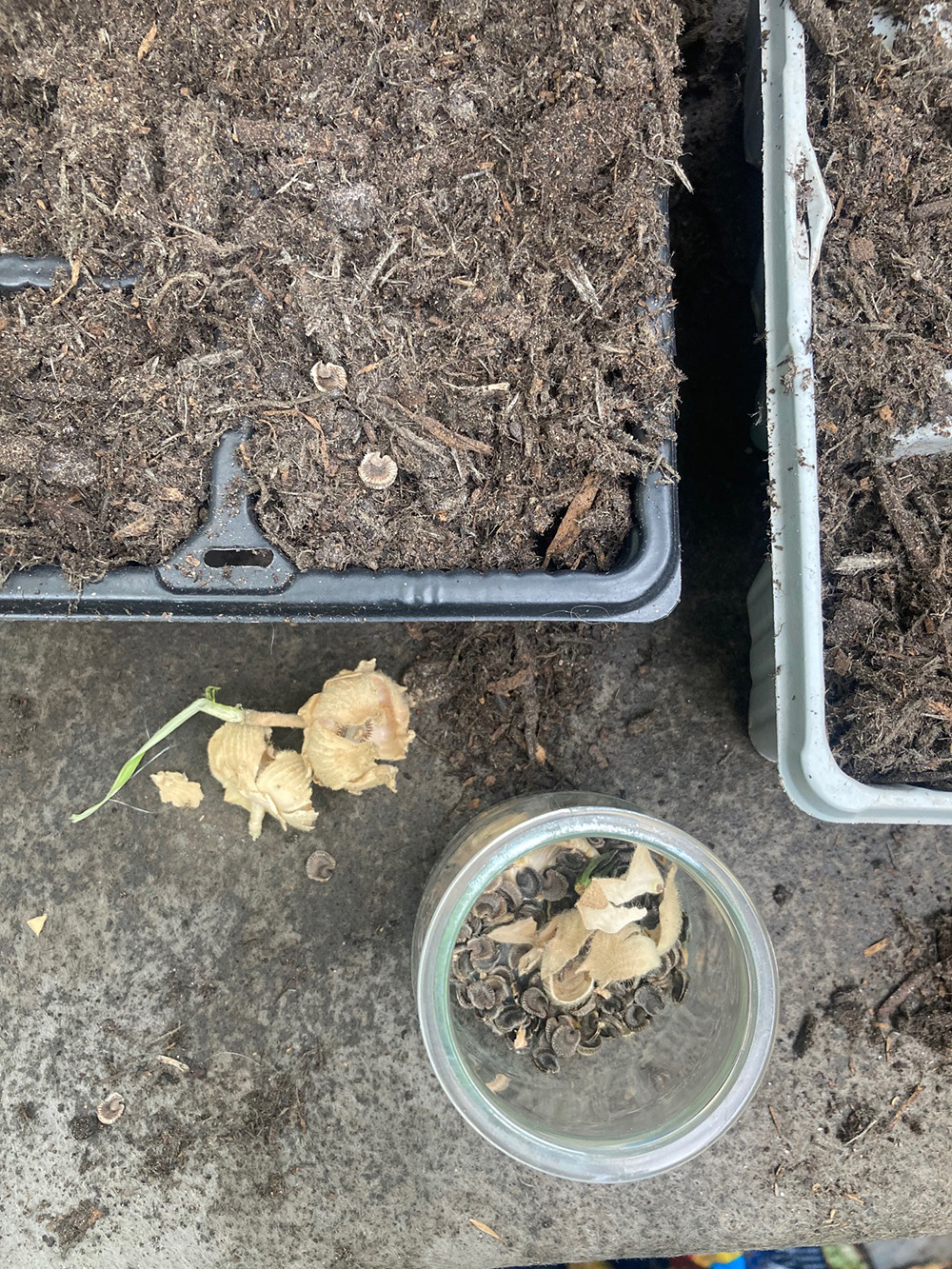 There will be no random sprinkling this year. They are being sown in the greenhouse. Guides generally say to sow them in spring, but I am feeling a bit impatient, and also have the sense that, well… they are ready, and falling to the ground, seeking out cracks in the pavement, so mother nature must have some sense that they are alright sown now.