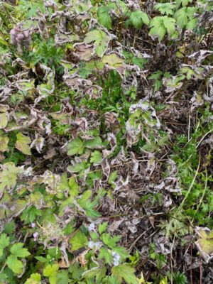 Can you see white patches on your plant leaves where there shouldn’t be white patches. At this time of year some plants start to show the signs of stress, especially after a spell of hot weather. The white is actually mildew, a fungal infection that often indicates stressed plants. You might see it in the veg garden on your courgette, pumpkin and squash leaves. Often the leaves will go yellow too. Your plants need feeding and good long soak of water to help them revive. It’s a good idea to cut off the affected leaves to reduce the spores from spreading. Personally, I would not apply a fungicide as I don’t want my plants dressed with toxins. Make a note to improve the soil where your plants are growing in the autumn and winter and remember to feed and water regularly through the growing season.