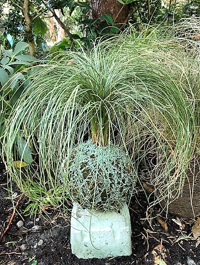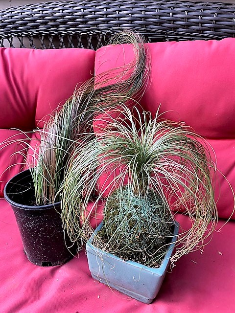 Remove your plants from their containers, and knock off extraneous soil. Open ball in the middle, insert the roots, and smooth ball back together. Chance likes the airy look of grasses, like finely textured sedges (Carex) and grass-like plants, such as liriopes. He mixes colors, putting together small plugs—for instance, Carex flacca ‘Blue Zinger’ with the golden C. oshimensis ‘Everillo’.