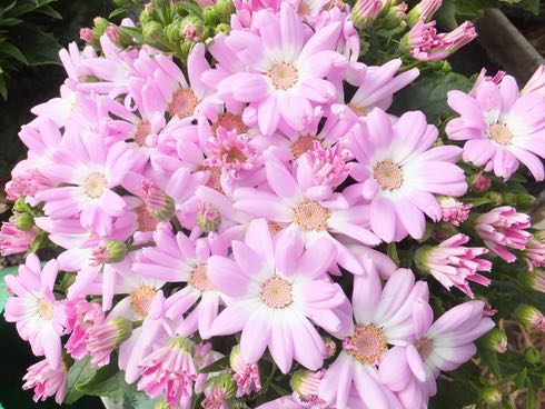 Anyway Senecio cruentas, Cineraria, Spring Glory, is a delightful long flowering greenhouse jewel that is also an excellent house-plant though unfortunately not long lived. It is grown the first year and then the following spring and summer bursts into a magnificent display of masses of bright daisy like blooms. The original purplish species has been bred to give these an unusually wide range including pinks and maroon reds but also violet blues and many with attractive white rings in their centres.