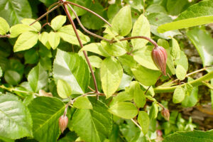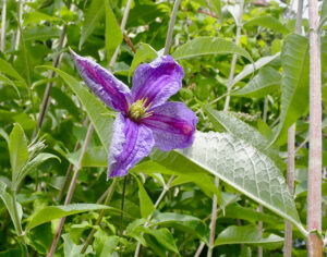 Viticella clematis, which have (Vt) after their varietal name, are very drought-tolerant once established. This is because this species grows naturally in drier parts of Spain and southern Europe. Consequently, viticellas don’t suffer from wilt in dry conditions, as larger-flowered clematis do and can. In fact, the species has been thriving here since 1569 and it was called the “virgin’s bower” in honour of Elizabeth I. The species has dark-blue bells, but clematis breeders have produced a full range of colours and flower shapes.