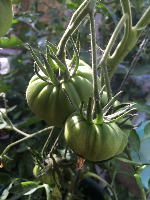 This is the joy of course in having moved all of our growing activities from the allotment to the end of the garden, and given up the allotment. I realise how lucky I am to have the space and lots of people cant do this, but by pulling down a big ancient shed we have managed to free up this space. The allotment was never a place for pottering, just because of the sheer effort involved in getting up there. It was always a pretty intensive and dedicated work time: everyone up for several hours, lots of sweaty work, then everyone home again. It was no less gorgeous for being that, and I loved it and always came away with a great sense of achievement, but I have missed having gentle, tea-fuelled pottering in my life, and it is very good to get it back. I am embracing it with great relief: gardening is much easier than it has been for some time. The tomatoes and the aubergines seem to appreciate it too.