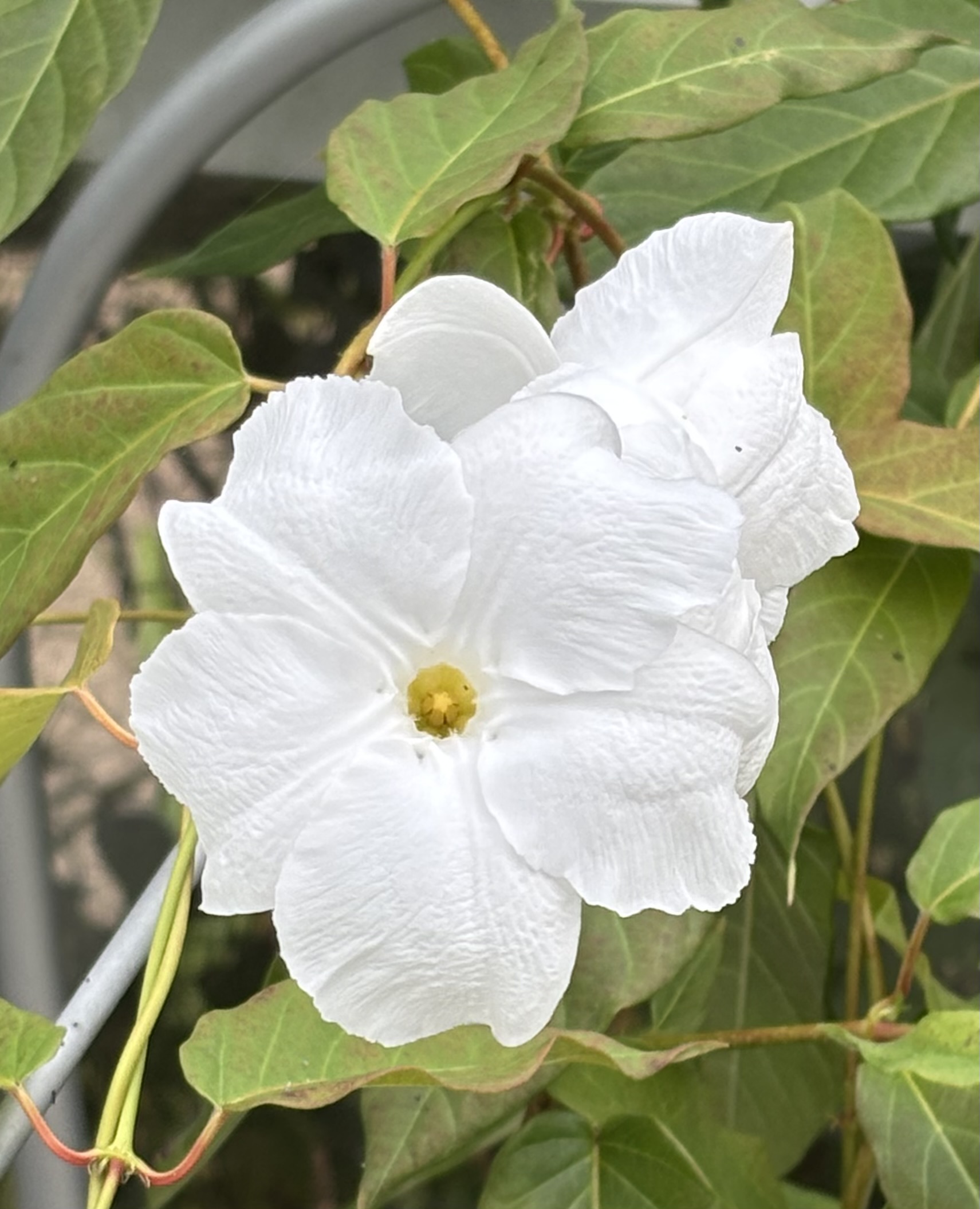 Since being diagnosed with cancer several years ago I made a list of ‘must grow’ plants. One of them, Mandevilla laxa, the star image in my diary this month, is a plant that doesn’t disappoint. This deciduous climber from Argentina, and nearby countries, reaches 4m tall, bearing beautiful, exquisitely perfumed white flowers on new growth from mid-summer to autumn. A friend grows it outdoors in the central London Borough of Battersea and another in a sheltered garden in Hampshire, so it is worth experimenting with outdoors in microclimates or gardens in warmer parts of the UK but you can rely on the flowering when growing in the greenhouse. Here are some more details from the Royal Horticultural Society website: https://www.rhs.org.uk/plants/50035/mandevilla-laxa/details It comes highly recommended.