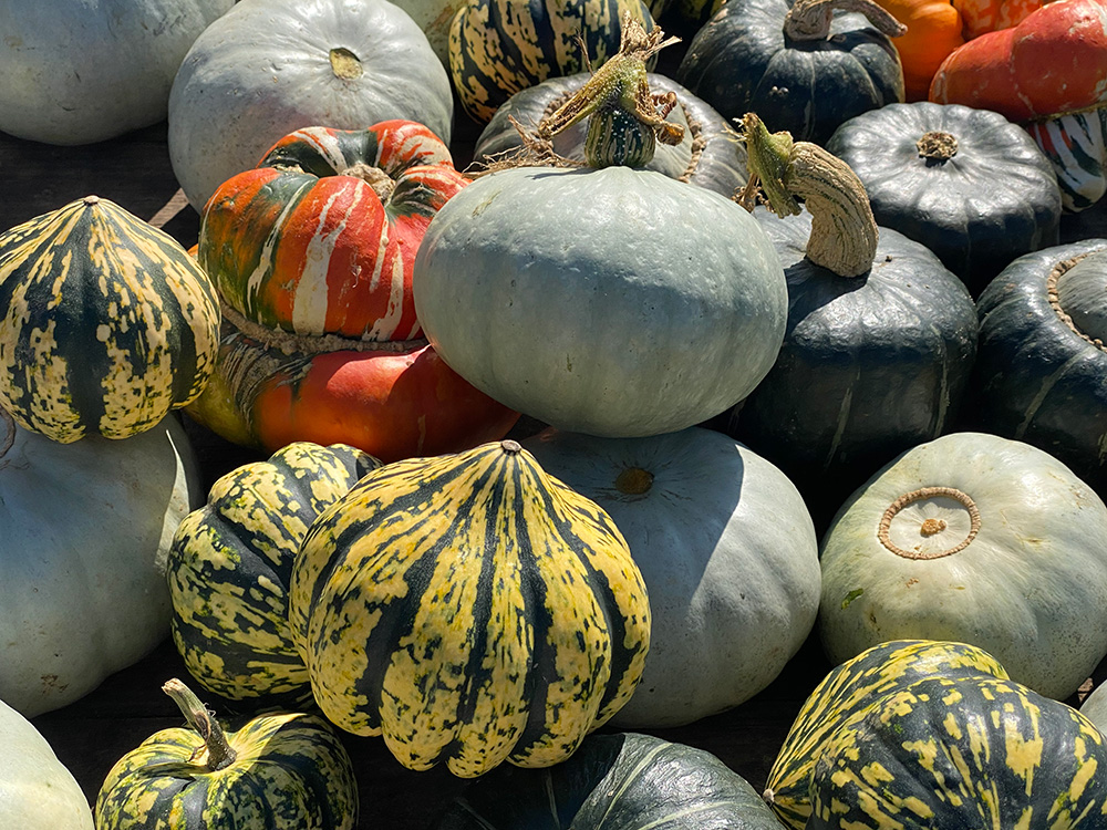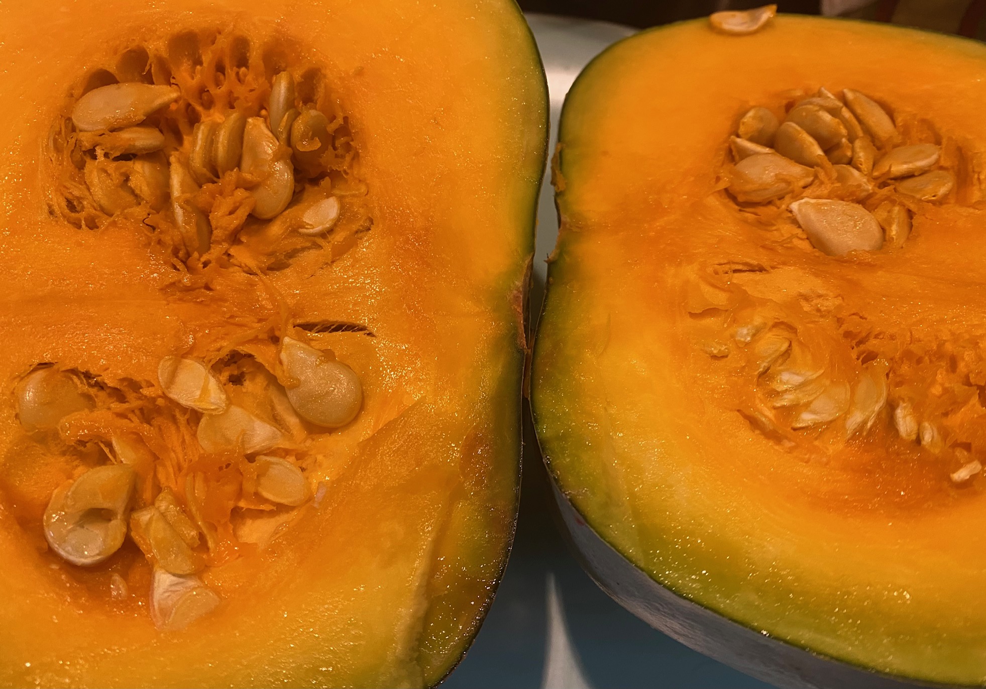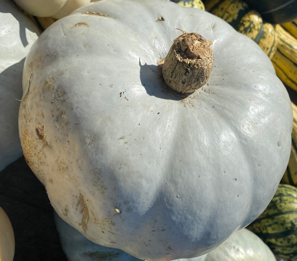 Pumpkins aren’t just orange either, they come in a huge range of weird and wonderful shapes, sizes and colours. My favourite is the silvery blue pumpkin called Blue Prince. It’s delicious roasted and makes great soup.