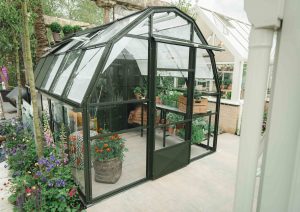 The tradestand designed, built, and planted by garden landscaping firm Base Squared, will feature Hartley Botanic’s Opus Botanic Glasshouse, Victorian Villa and Victorian Chelsea Glasshouses and a Wisley 8 Grow & Store Greenhouse. Three of the structures have been powder-coated in lighter colours – Country Stone, Verona Stone, and Olive Leaf – to give a fresh look and to reflect how many customers are choosing soft stone and light greens in their Greenhouse choices.