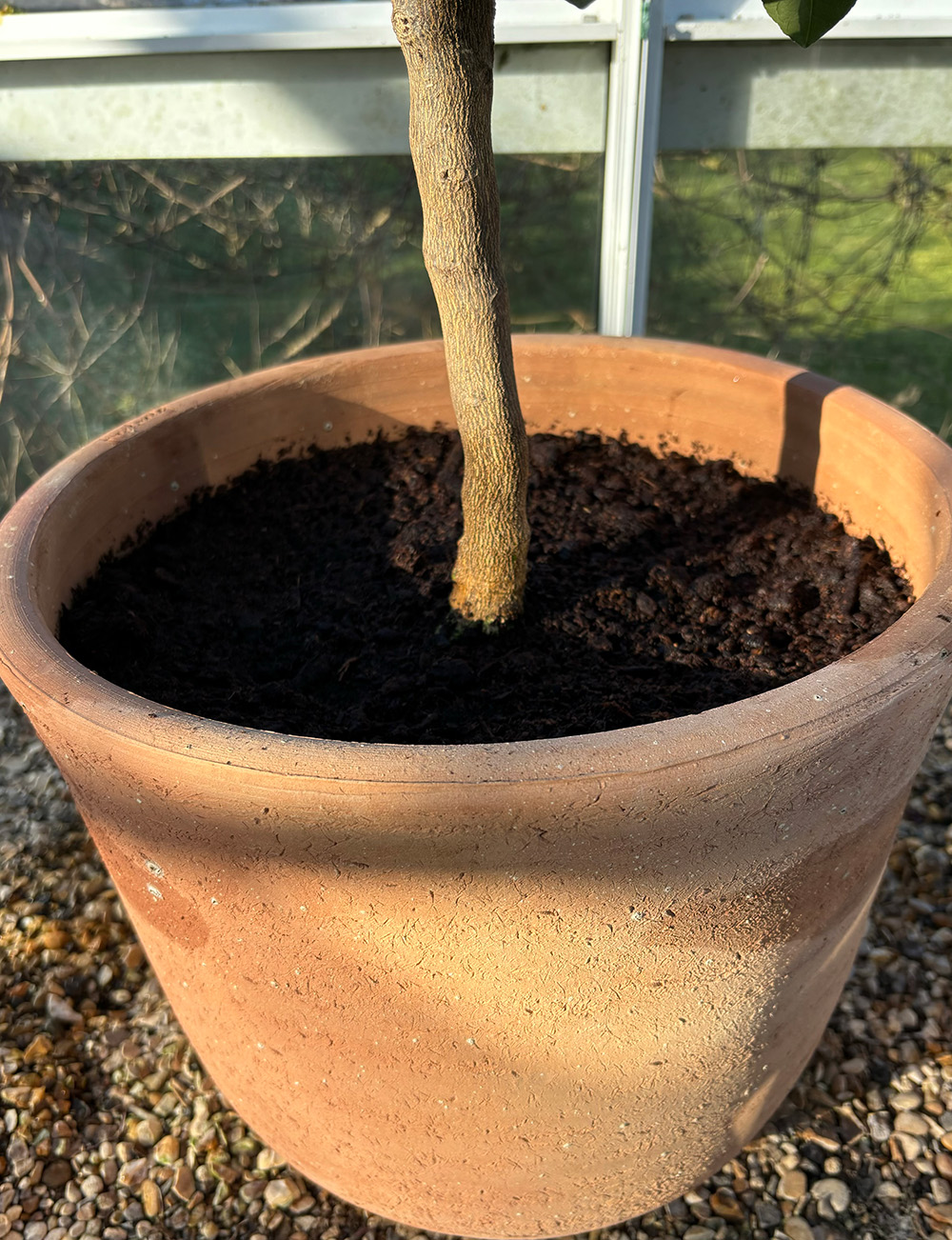 Containerised figs can be treated in a similar way, but are transplanted into peat free John Innes no 3 compost (or similar) leaving a gap of about 2.5cm between the compost surface and rim of the pot for watering. Once the weather warms in early June, if space is short, they go outside onto a sheltered patio. Make sure that the new pot is one or two sizes larger; don’t overpot.