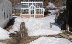 When snow lies deep on the ground, this Hartley greenhouse is snug and clean and ready for business.