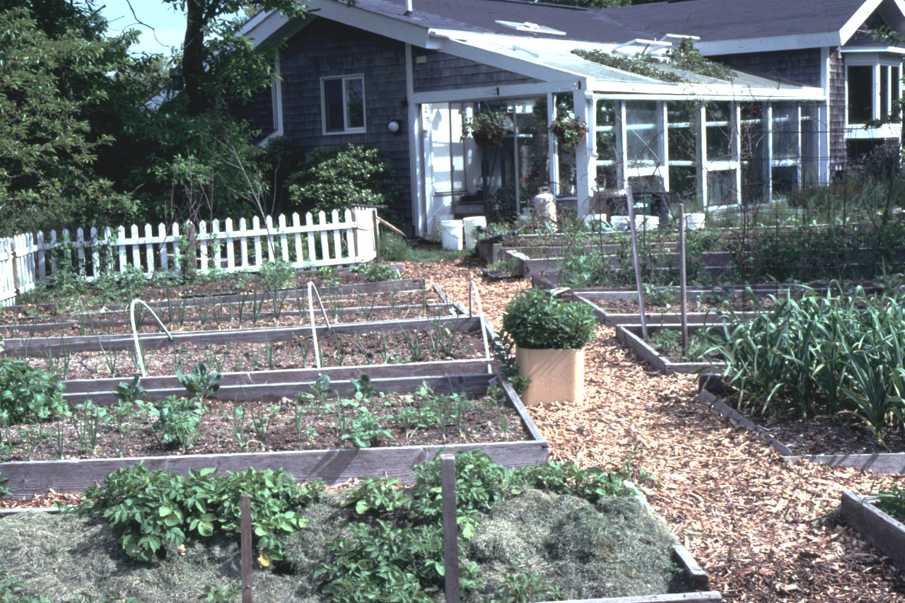 When this heated greenhouse was filled, I built a second unheated one, also wood-framed and using glass that came at no cost from the local transfer station. In it, I grow peas, beans, lettuce, herbs, and strawberries, enjoying yields up to a month before my outdoor beds produce anything. One factor that slows the development of my outdoor crops is the cold wind directly off the ocean in spring. To help overcome this problem, I’ve recently installed a hoop house over a pair of 40’ long, raised beds in the hope of keeping the cold spring winds off the plants and enabling earlier harvests.