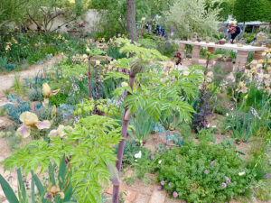 What raised Beth above most gardeners was her artistic eye, which was helped along by her friendship with the painter Sir Cedric Morris of Benton End in Hadleigh in Suffolk. This year’s Chelsea Flower Show displayed some of Morris’s ‘painterly’ irises in shades of blue, brown and olive in Sarah Price’s Gold Medal winning garden. I fell in love with ‘Benton Olive’ and managed to acquire some of this pale-blue, muted olive-green and brown beauty from Wootten’s Plants. They, along with the Beth Chatto Nursery, sell some of Cedric’s irises. ‘Benton Nigel’ is a rich purple-blue that does well here. It’s the most available of all and well worth a place in anyone’s garden.