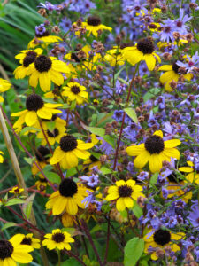Lower down the height scale comes the best Black-eyed Susan of all, Rudbeckia fulgida var. deamii or Deam’s coneflower. There are several forms of but this one has the best foliage and the neatest flowers, a crisp mixture of warm-yellow and brown velvet. This is another of the very best perennials and slightly taller than most forms too. I saw this mass-planted in John Massey’s private garden at Ashwood Nurseries (open every Saturday – check the website) and it shone out at the front of a late-summer border. Beth Chatto has the correct plant, raised by division and not from seed.