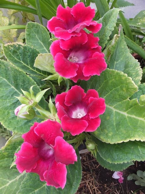 I say fickle and it’s true, these need the right conditions or they fail quickly, the large almost woolly leaves are prone to water damage and worse, are brittle so easily lost or damaged. Over-watering, tap water not rain, or just using cold water not warm, risks losing the plants. Their compost needs extra sand and plentiful leaf mould, in a wide shallow, preferably ceramic pot. They need regular watering, remember warmed, from late winter till mid autumn then must be dried off till the next year. Light feeding is needed all summer to keep up the flowering.