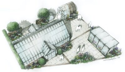 The tradestand designed, built, and planted by garden landscaping firm Base Squared, will feature Hartley Botanic’s Opus Botanic Glasshouse, Victorian Villa and Victorian Chelsea Glasshouses and a Wisley 8 Grow & Store Greenhouse. Three of the structures have been powder-coated in lighter colours – Country Stone, Verona Stone, and Olive Leaf – to give a fresh look and to reflect how many customers are choosing soft stone and light greens in their Greenhouse choices.
