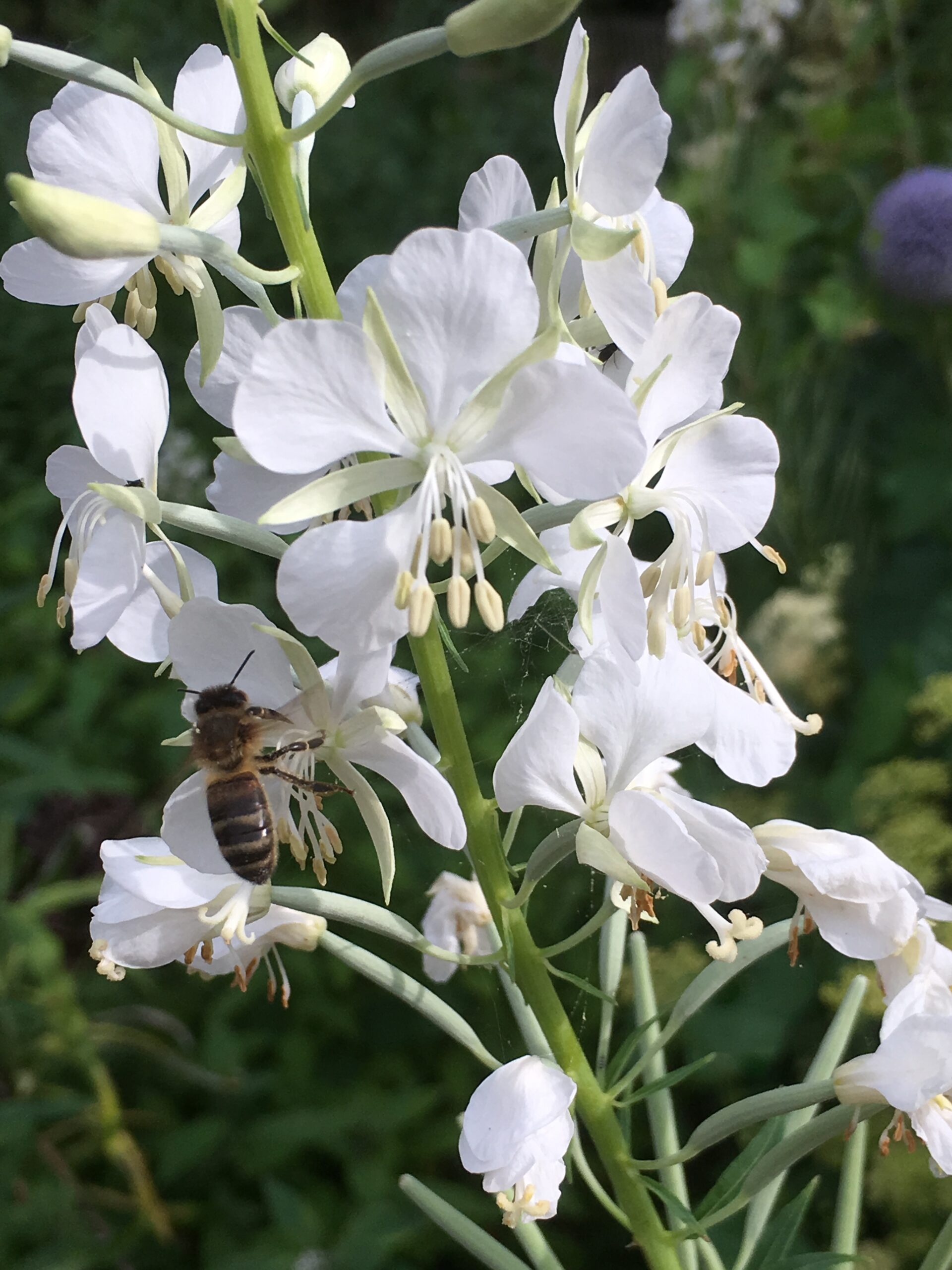 At the back of the border this tall perennial wildflower bring nectar rich joy to the pollinators and the flower bed. It’s a native wildflower, but it spreads widely and some consider it to be a ‘weed’. Personally, I love it. It’s also available in white! This plant is a survivor and quicky colonises bare ground via it’s fluffy seeds that are wind distributed far and wide. One plant can produce 80 000 seeds. Not only are the flowers rich in nectar but this plant is baby food for one of my favourite moths, the Elephant Hawk Moth, a pink and lime green delight that has caterpillars that resemble elephant trunks (hence the name). But there are other moth larvae (that also become pollinators) that feed on the plants too like the bedstraw hawkmoth. It’s a pretty flower and one I have picked for informal flower posies.
