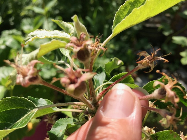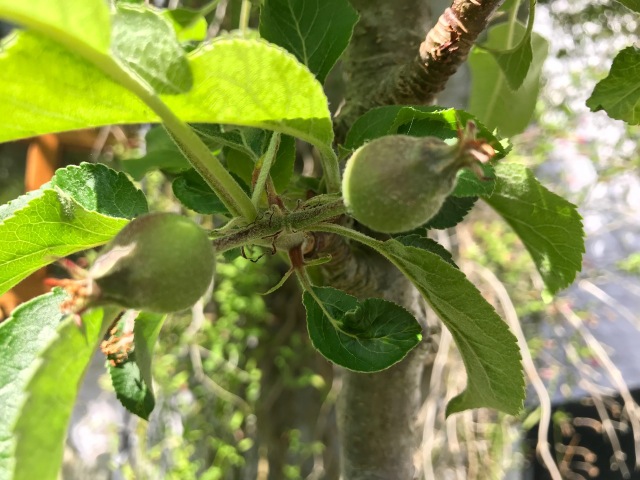 June can be a strange month in our gardens. While the garden is burgeoning with lush vegetation in the moist warm weather, something very strange is happening on our fruit trees. Particularly the apples.