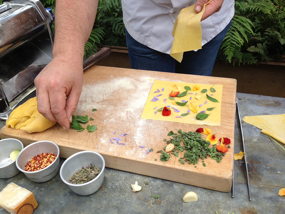 Aim for a salad bowl twice a week picked from your garden where the emphasis is on flavour and the cost is virtually nil. Fresh from the garden and greenhouse and free from chemicals, the taste of the herbs will transform your salad bowl and infuse it with nutrients, vitamins and minerals as well as taste and texture of the leaves. Garnish with herb flowers from rosemary and chives for an additional effect and enjoy. Or if you make your own fresh pasta roll edible flowers and mixed herbs into the pasta dough before you cook it for a great look and a tasty flavour.