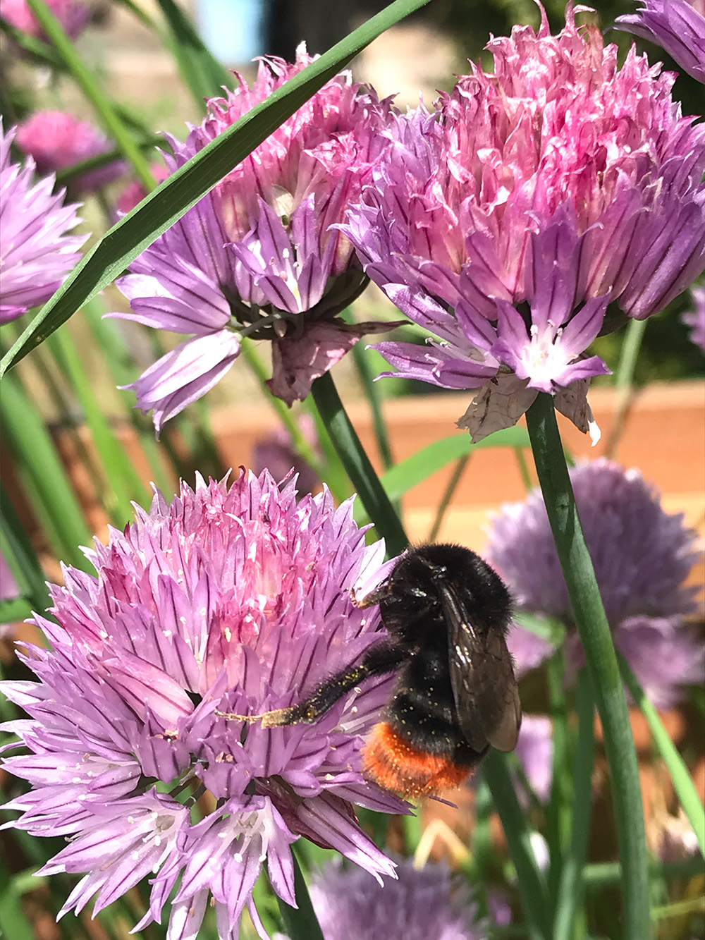I love growing chives. These oniony leaves are so useful in the kitchen, the plants make a great low border around a raised bed, and the rich pink flowers are pretty, edible but also rich in nectar for pollinators. You can grow chives from seed, or if you know someone with a healthy clump you could ask them to divide it in the autumn so you can grow your own, or buy a pot of ready grown chives from the garden centre or the supermarket and pot them up. Chives will transform a summer salad, chop the leaves and mix into the salad leaves. Add chopped chives to omelettes and potato dishes. Or make some garlic butter and add a generous portion of chopped chives to add colour and flavour. You can freeze your butter by forming it into a roll and then cutting it into portions and dividing these with greaseproof paper. Then use a segment at a time to infuse the flavour into your menus.