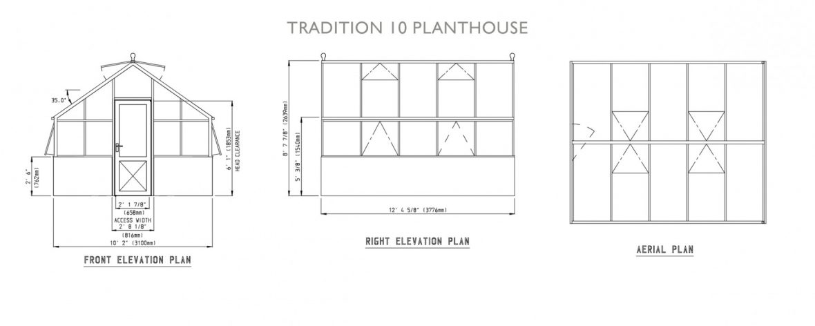 The Tradition 10 Planthouse enjoys a width of over 10 feet and a length to suit, perfect for some serious growing, for the keen amateur to the experienced greenhouse grower. Designed to be built on a single skin brick wall for those who prefer the planthouse style, look and feel.